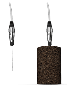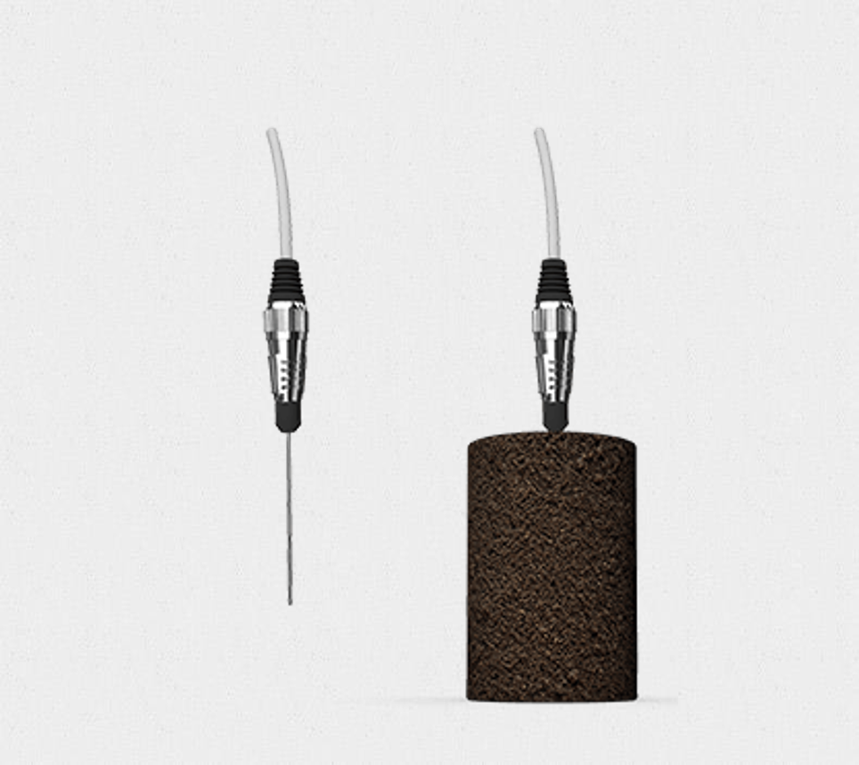 標配所含的100 mm長度的探針傳感器,用于測量土壤、軟材料、聚合物等易于插入的物質。探針傳感器完全插入等溫的樣品中,并按下按鈕進行測量。180秒后,直接顯示熱導率和熱阻率的測量結果。數據可以保存在MicroSD卡,或將主機跟電腦連接并導出數據。