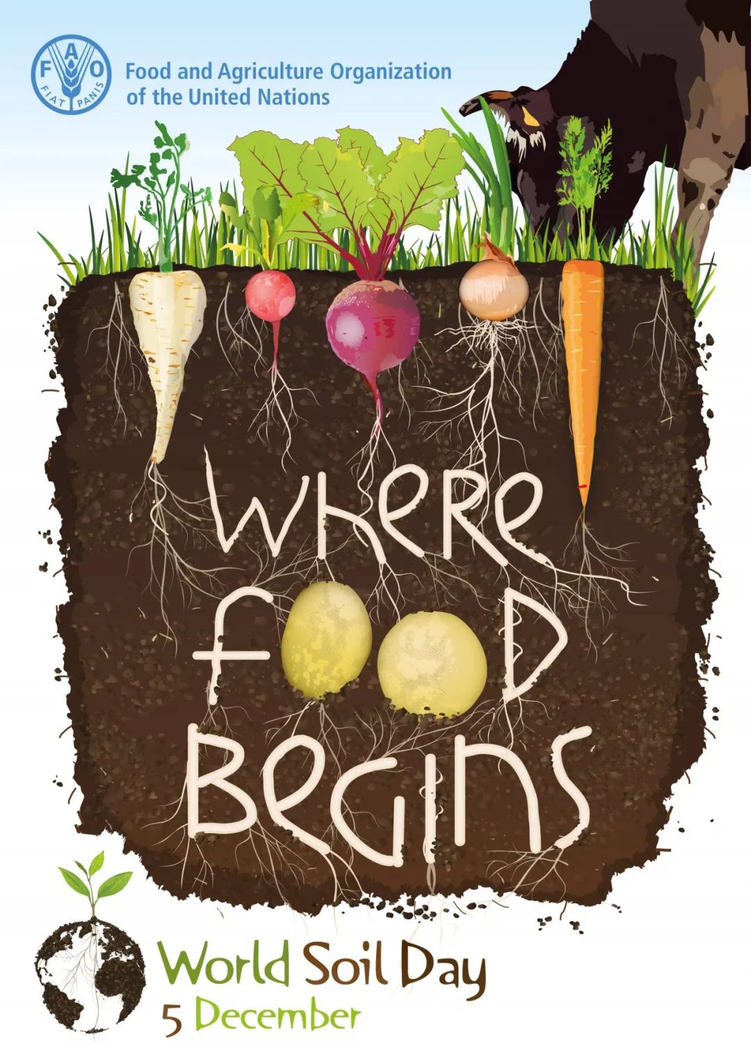 世界土壤日由國際土壤學會(IUSS)在2002年發(fā)出提議,并在2013年6月的聯(lián)合國糧農組織大會一致贊同設立世界土壤日,將其作為一個提升全球認識的平臺。2013年3月,聯(lián)合國大會將2014年12月5日設立為第1個正式的世界土壤日。世界土壤日的設立,意在讓人們意識到健康土壤的重要性和倡導可持續(xù)的土壤資源管理。
