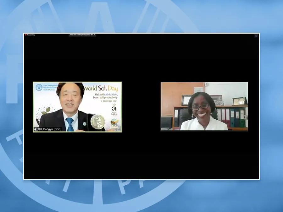 糧農組織總干事屈冬玉為剛果共和國的土壤科學家Lydie-Stella Koutika頒獎。©糧農組織點擊文末鏈接了解糧農組織在土壤方面的工作, 其中全球土壤伙伴關系匯聚了土地使用者和決策者等一系列利益相關方,通過協作共同發力,改善土壤治理和促進土壤的可持續管理。伙伴關系的主要工作包括:定期編制《世界土壤資源狀況》報告;在發展中國家培養數字土壤制圖能力,形成各個層級的土壤信息和數據;建立國家土壤信息系統;開發各種工具加強土壤健康和防止退化,并在實地推廣良好做法;創建和協調可持續土壤管理的技術網絡,進行宣傳倡導。